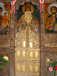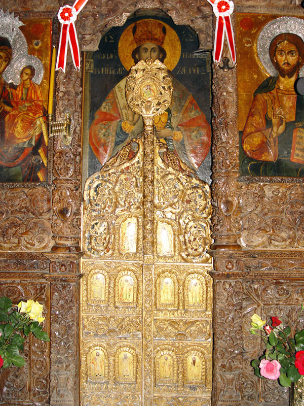 Περίφημα είναι και τα επιχρυσωμένα βημόθυρα του τέμπλου, με τις εικονιζόμενες στο κάτω μέρος μορφές Αγίων Ιεραρχών και Προφητών. Χαρακτηριστικό είναι ότι οι Προφήτες ατενίζουν προς την παράσταση του Ευαγγελισμού που βρίσκεται από πάνω τους, και βαστούν ειλητάρια, που αναγράφουν προφητικές ρήσεις σχετικές με το γεγονός.