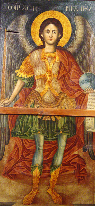 Μια υποψία - όχι βεβαιότητα - για τον χρόνο κατασκευής του τέμπλου μας δίνουν οι δεσποτικές εικόνες του 1772. Νεώτερη, του 1838, είναι η αμφίπλευρη αγιογράφηση του μουσαμαδένιου παραπετάσματος, που κλείνει αντί για βήλο την Ωραία Πύλη. Έργο του «Δημητρίου, μαθητού Ιακώβου του Αγιορείτου» φέρει από την πλευρά του Ιερού τον Άρχοντα Μιχαήλ και από την εξωτερική τον Μέγα Αρχιερέα Χριστό.